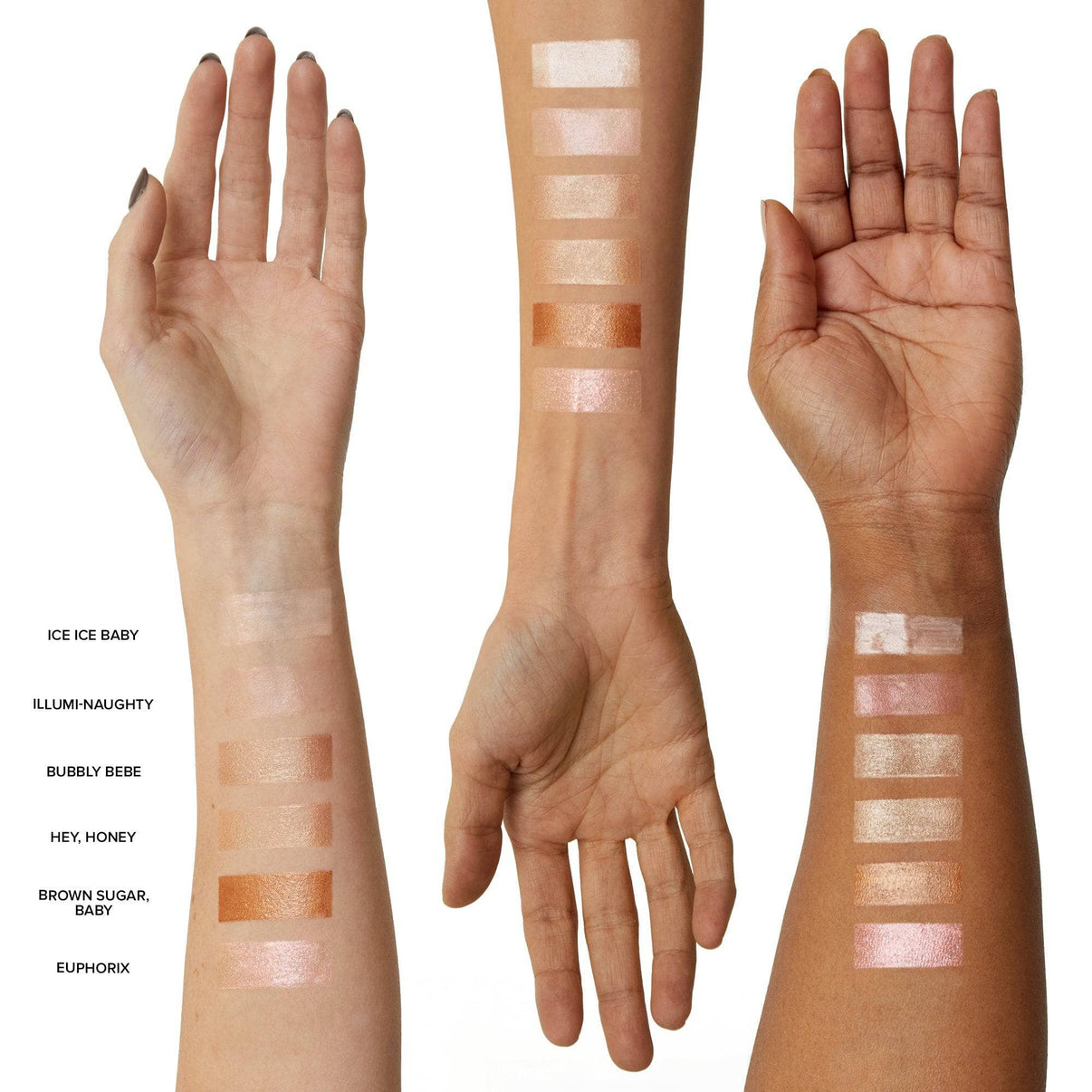 A skin-loving and brightening balm melts with a soft glow that provides dewiness and luminosity to your *eyes, lips and cheeks. Cream highlighter sticks that glide onto your skin to create a lit-from-within glow. Soft metallic glow that provides instant dewiness and luminosity that lasts all day. Light and blendable formula that will make your skin's natural beauty glow!