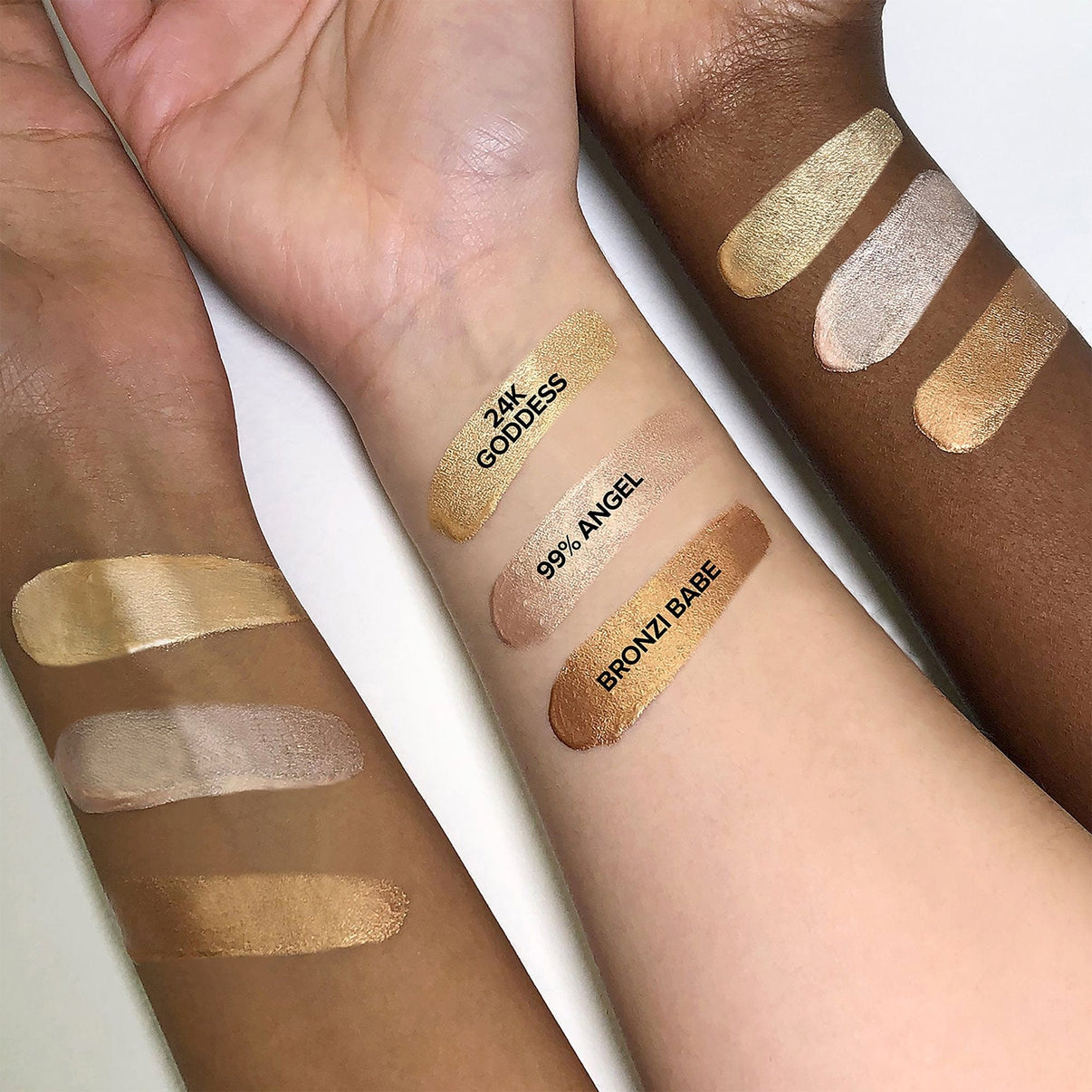 - This liquid highlighter lightweight formula melts into the skin rather than sitting on top of it to achieve the lit-from-within glow.