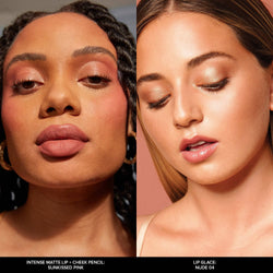 INTENSE MATTE LIP + CHEEK PENCIL multi-tasks in three (3) warm nude shades; SUNKISSED NUDE, SUNKISSED PINK and SUNKISSED ROSE for a soft matte cream blush and kissable lips. The Sunkissed Nude Lip Pencils create an easy lip line and rich lip color that provide a natural lip sculpt for a beautiful plump pout.