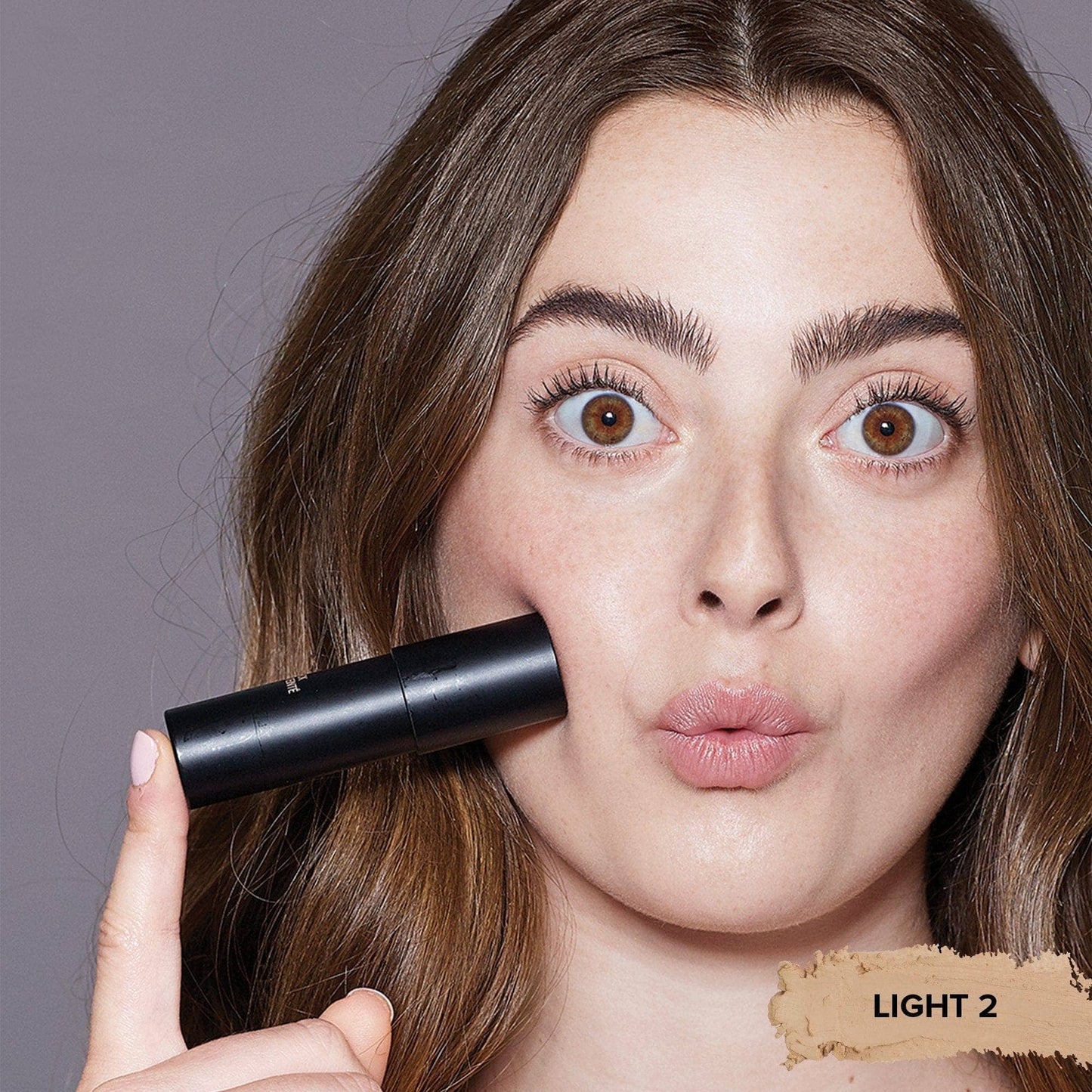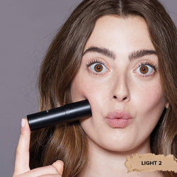 Young woman kissing a Tinted Blur Foundation Stick in shade Light 3